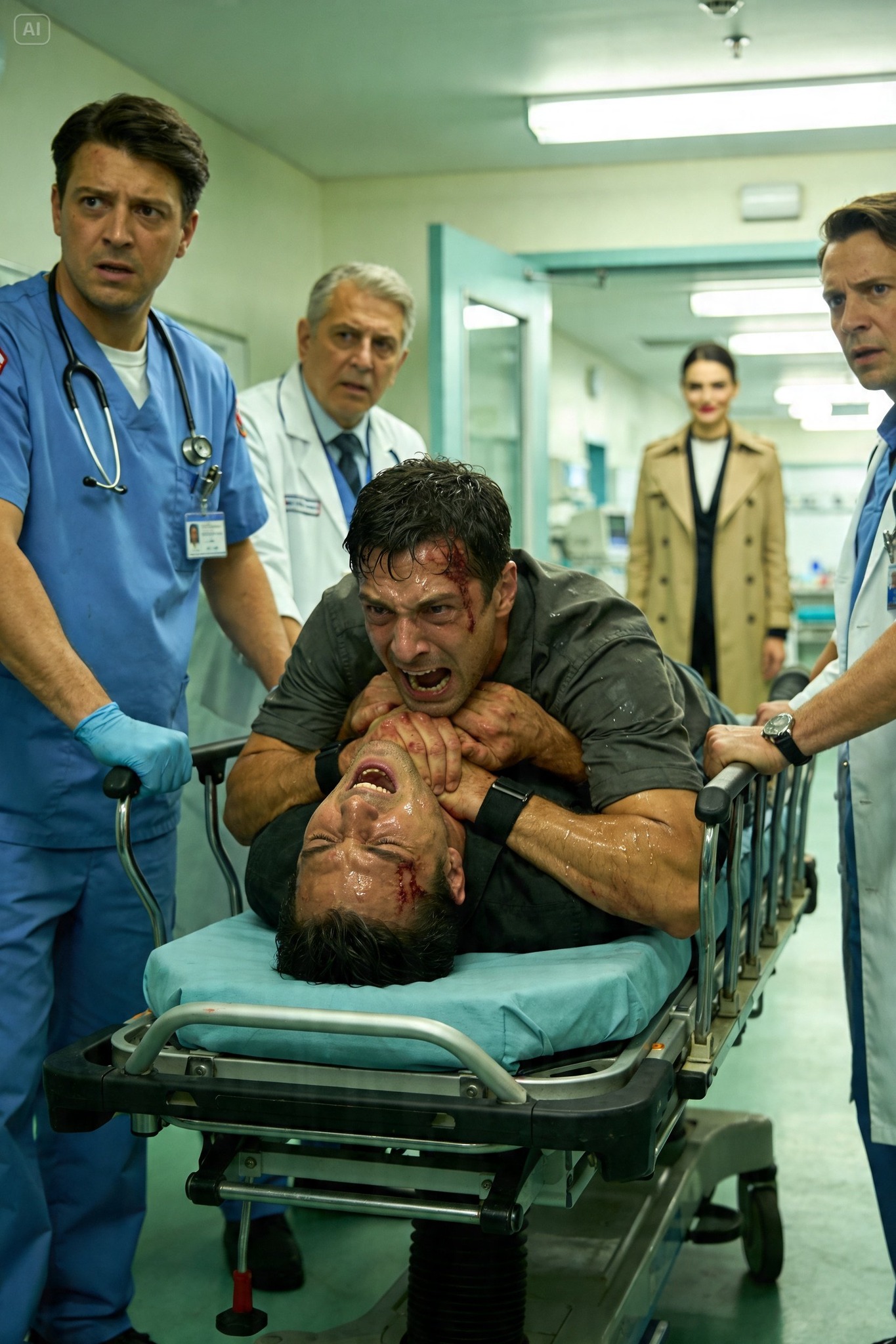 “Tuo mies on kuolemaisillaan, ellei joku vedä häntä pois raiteilta heti.”Lähes jo jyrisevä rahtijuna huusi alas raiteita, torvi huutaen, jarrut kitisten turhaan, ja silti suuri motoristi seisoi täysin paikallaan raiteilla—kädet tiukasti ympärillä jotain rintaa vasten, ikään kuin suojelisi sitä maailmalta eikä junalta.Risteyksen valot vilkkuivat punaisina.