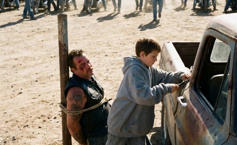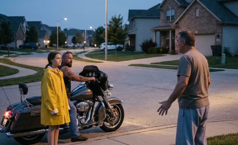 Svarta motorcyklar stod uppradade längs vägen som en rörlig vägg—tunga, högljudda, skrämmande. Skinnjackor. Tatueringar. Ansikten hårda av år som ingen där förstod.