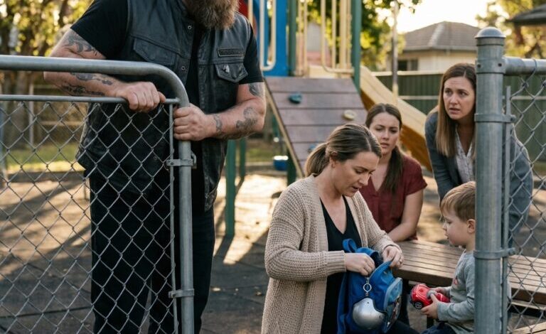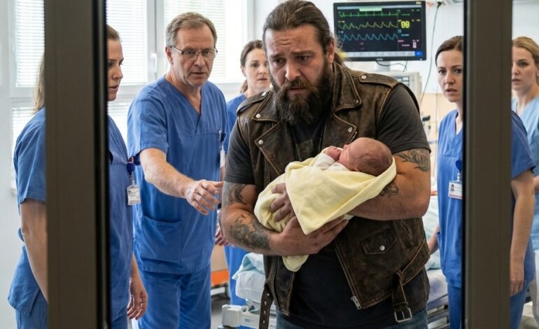Det hände framför en liten polisstation på landsbygden i Montana, där en folkmassa hade samlats för att vänta sig en enkel pensioneringsceremoni för en åldrande polishund — men ingen förväntade sig att en tuff utseende motorcyklist skulle kliva fram och behandla djuret som om det bar på något mycket mer ömtåligt än en hund.