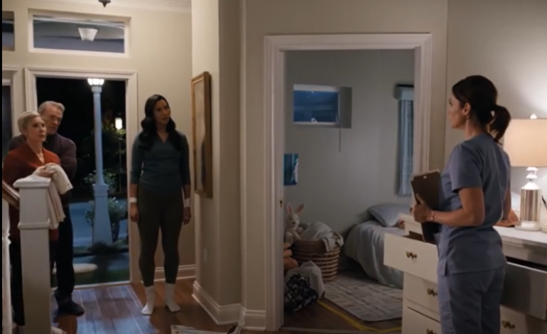 Sharon usava um vestido roxo profundo, maquiagem de bom gosto e um discreto colar de pérolas. Seu cabelo estava arrumado. Sua postura era elegante. Ela parecia uma mãe do noivo graciosa em todos os aspectos.